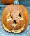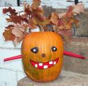 I also forgot (all this forgetting must have something to do with my growing senior status) to gather the names of our pumpkin artists. So, you can help by emailing me the name(s) (both pumpkin and creator)I should associate with each pumpkin's photo. (Want to have some fun? Send in your suggested name for some or all of the 'Unknown' pumpkins. No pumpkin should be relegated to "Unknown: status.)