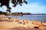 "I just snuck a peek at your page. Re that 1959 picture: in 1959, people of "our age" like the Beyers girls, Barb Burda Sickler, Marilyn Hartmann Ehrenreich, Mary Kay Carlton Masnado, and myself didn't sit in the sand as much as we sat out on the dock. We're probably that cluster of people you see on the dock. And of course the boys pushed us in the lake. There was a diving board and a ladder out there--remember?