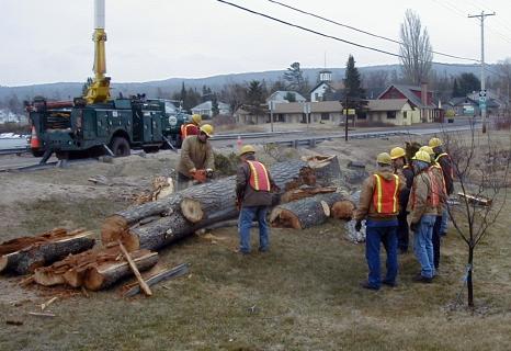 We did chop a tree down a few days ago, a big one at that. The Harbor population about doubled when twenty or so power company and county workers showed up on Front Street and began sawing away at the century plus old pine out in front of Carlton's. A grand tree, made even more special because it was the lone remaining tree of note along our beachfront.