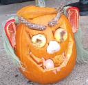 I also forgot (all this forgetting must have something to do with my growing senior status) to gather the names of our pumpkin artists. So, you can help by emailing me the name(s) (both pumpkin and creator)I should associate with each pumpkin's photo. (Want to have some fun? Send in your suggested name for some or all of the 'Unknown' pumpkins. No pumpkin should be relegated to "Unknown: status.)