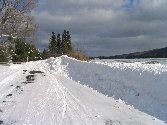 Meanwhile, this parade of lake effect snowstorms, dumping over two feet of fresh snow over the past few days, is welcomed by me, but probably not by the folks up in the copper towns. Yes, the snow bank pushed up in front of my place by the snowplow looks pretty impressive, but it and the other piles around town are not as awesome as they usually are in mid February – thanks to our January thaw. Our copper town neighbors, however, smothered under the bigger drifts that come with residing in the snowier “higher terrain”, are as usual running out of places to push the snow they clear away from their front yards – the only place to park a vehicle on the old mining company small lots. Some of their snow piles dwarf their houses. Eagle Harbor types seeking breakfast and gossip at Slims, the copper towners' popular eatery and reputed court house Tammany headquarters, do well not to mention what an “easy” winter we are having down along the “banana belt”.