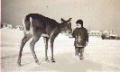 They would play with the kids on the beach, visit local gardens and even stop at the Store for treats.A number of photos of these characters grace Harbor scrapbooks. The beach photo (with me - the kid with the stick) was found by Ric Finke (at an ebay auction!) and Vern Robinson sent us the wonderful "on the ice" photo.