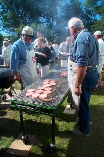 Event Chairperson Doug Schubert & Chef John Clarkson Prepare Brats & Burgers (7/2/00) |